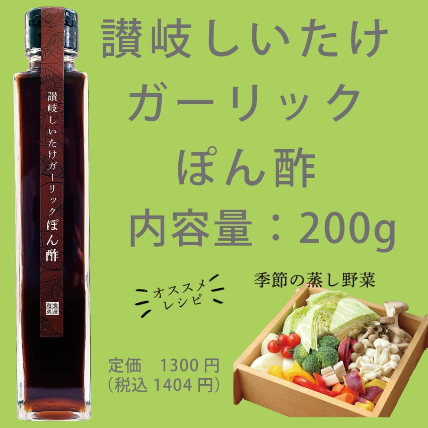 香り高い讃岐椎茸ぽん酢は、自家製ぽん酢と贅沢に使用した讃岐椎茸が特徴です。独特の風味と深い味わいがお料理を引き立て、食卓を豊かに彩ります。讃岐椎茸は、地元農家から直接仕入れた新鮮なものを使用し、丹念に風味を引き出して仕上げました。料理の薬味やドレッシングとしてはもちろん、おつまみにしてもお楽しみいただける一品です。素材の香りと旨みが詰まったこの一振りが、食卓を一層豊かに演出します。是非、お試しいただき、その美味しさをご堪能ください。